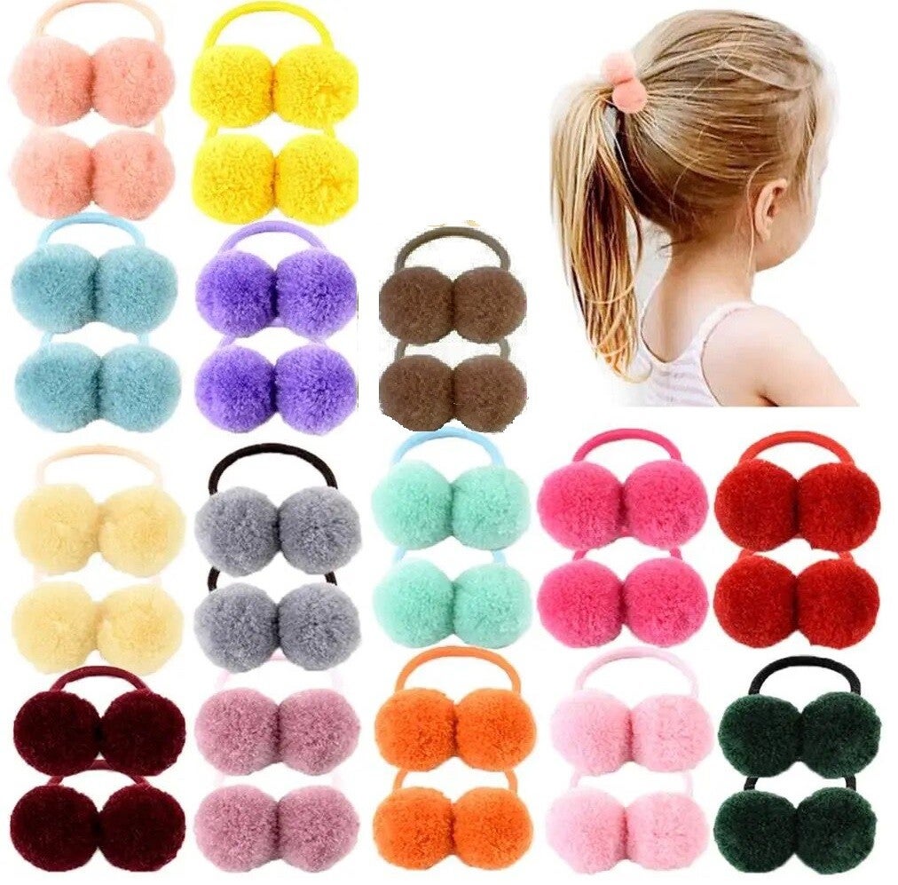 30 Stuks - Meisjes Haarelastiekjes met pompom - Multikleuren