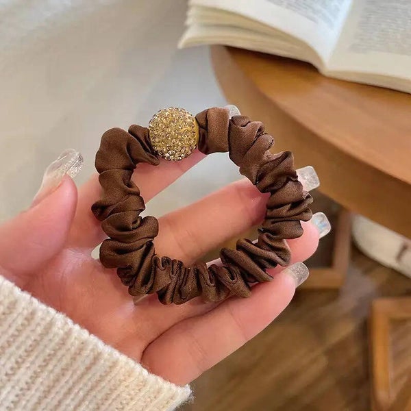 4 Stuks - Dames en Meisjes Haar Scrunchies met Steentje - Bruin, Beige, Zwart