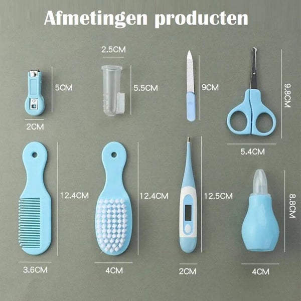 • Complete 8-delige verzorgingsset voor baby’s