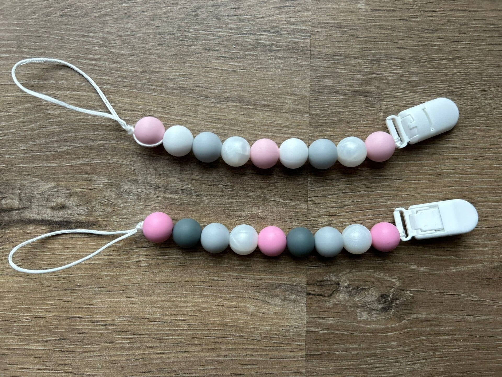 Dit setje bestaat uit twee prachtige speenkoorden gemaakt van siliconen kralen. Het setje wordt geleverd in een leuke verpakking en is daarom zeer geschikt om als cadeau te geven!