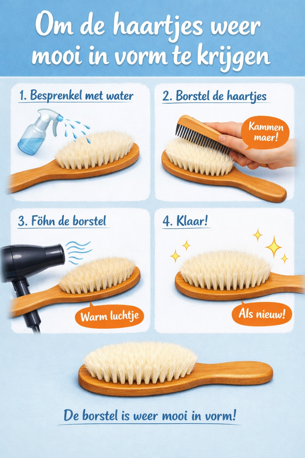 De zachte borstel met geitenhaar is erg geschikt voor pasgeboren baby's. Het hoofdje van de baby is nog erg kwetsbaar en zacht, waardoor harde haarborstels niet geschikt zijn. De haartjes van onze borstel met geitenhaar zijn extreem zacht, waardoor deze fijn aan zal voelen op het zachte baby hoofdje.