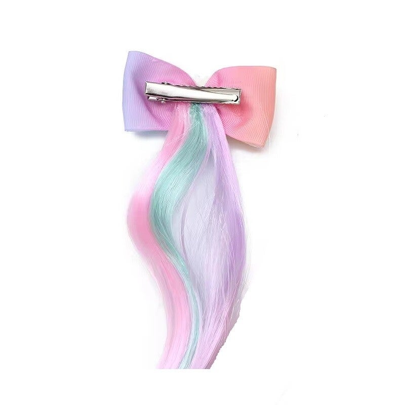 Vrolijk het kapsel van je kindje op met deze kleurrijke unicorn haarextensies! Dit setje van 2 plukken is voorzien van een schattige strik met unicorn detail, perfect voor kleine unicorn-liefhebbers.