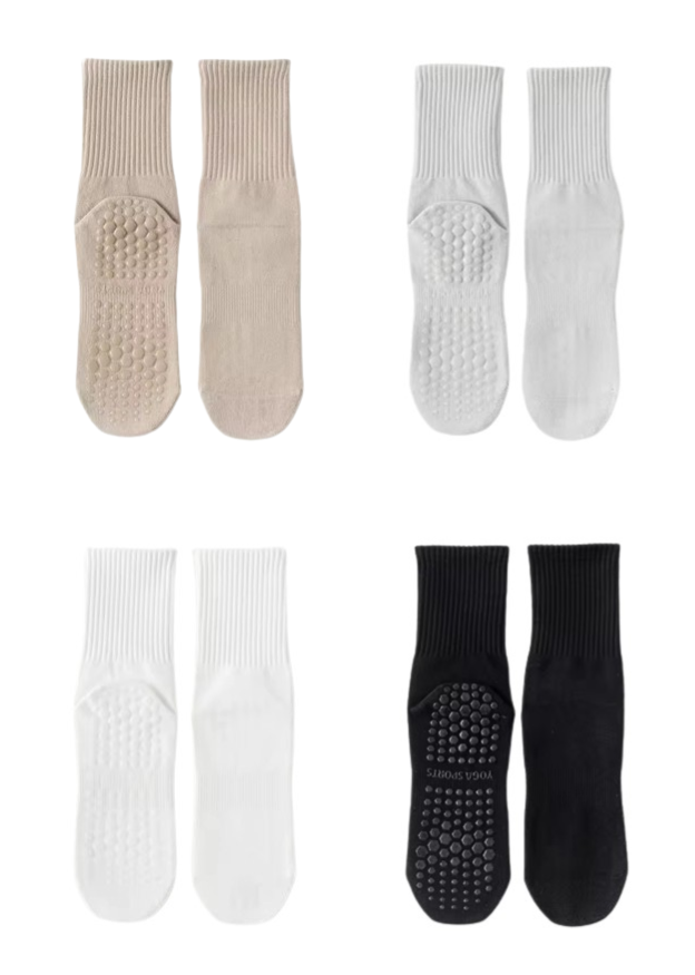 Dit setje bevat 4 paar stevige antislip sokken voor dames, ideaal voor dagelijks gebruik en sportieve activiteiten zoals yoga en pilates. De sokken zijn effen van kleur en voorzien van een antisliplaag, waardoor je veilig en stabiel kunt bewegen, zelfs op gladde vloeren.