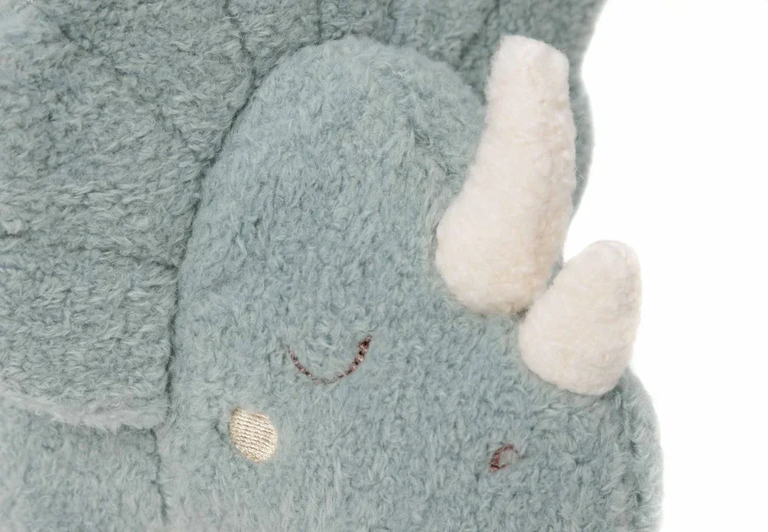 Wauw, welke stoere avonturier moet deze Dino echt bij zijn/haar collectie toevoegen? Deze Dino komt in een prachtig grijs blauw kleurtje met Ivory kleurige vlekjes en is heerlijk aaibaar. Je mini zal zich vast ook urenlang vermaken met deze leuke knuffel, want de oortjes zijn voorzien van een krinkel geluid! De knuffel heeft een extra tag mét palmboompje en dat maakt de knuffel natuurlijk nog interessanter. Maak thuis je eigen Jurassic Park met deze veel te lieve dino!