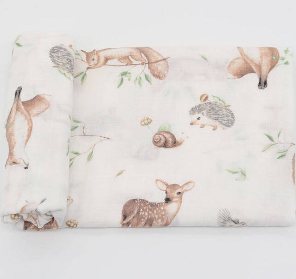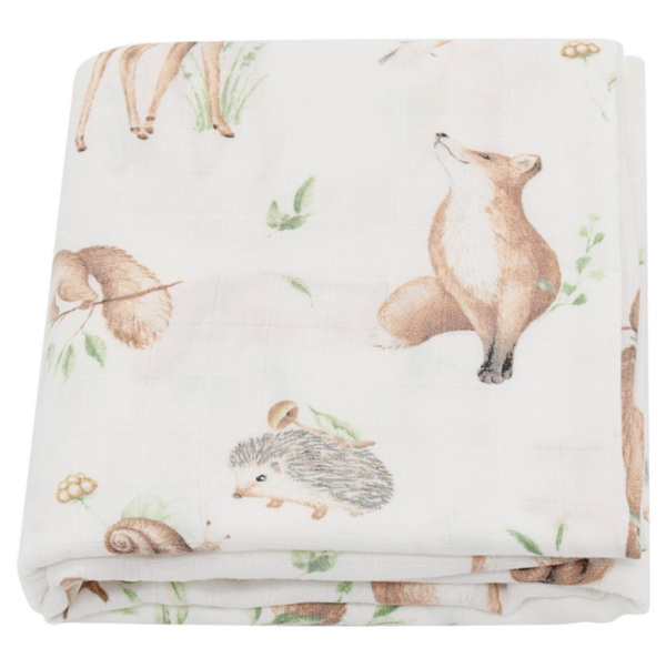 Hydrofiele doek XL - 120x120 cm - Inbakerdoek Bamboe - Eekhoorn Egel Vosje