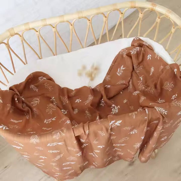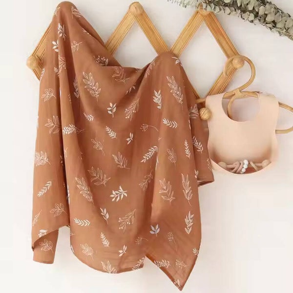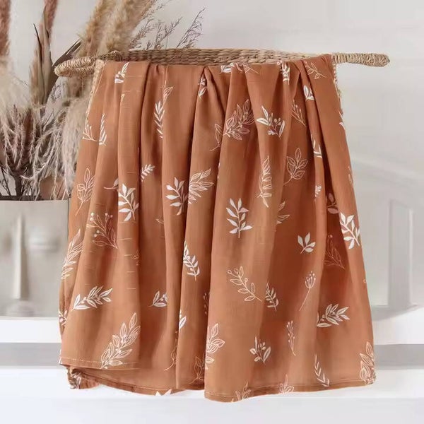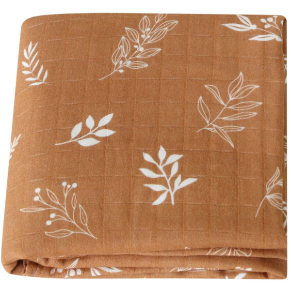 Hydrofiele doek XL - 120x120 cm - Inbakerdoek Bamboe - Roestbruin Takjes Blaadjes