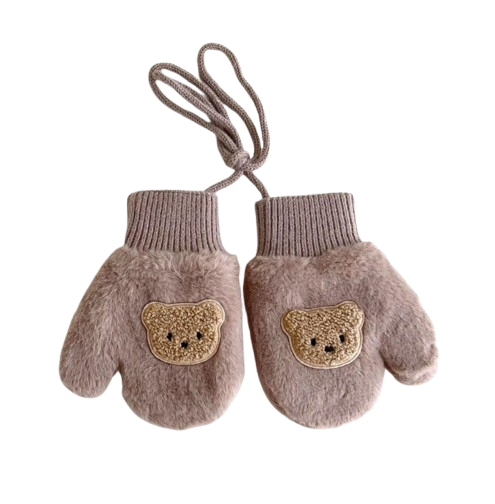 Pluchen Wanten met Voering met Koord - 2-4 jaar - Beertje - Bruin