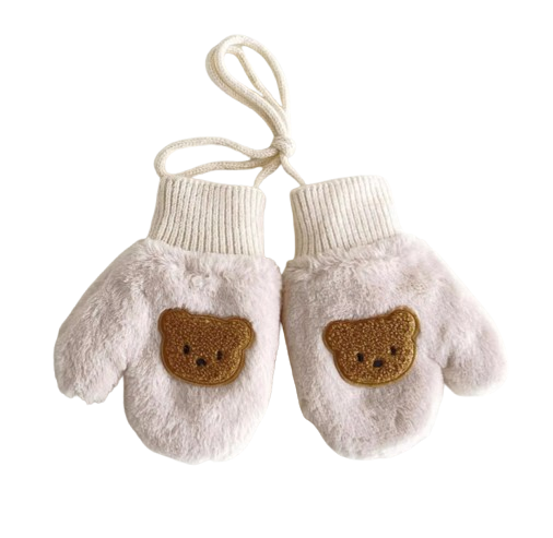 Pluchen Wanten met Voering met Koord - 2-4 jaar - Beertje - Crème