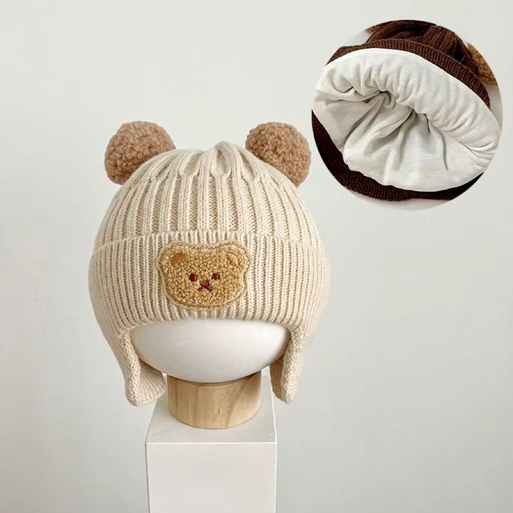 Muts Beertje Teddy Oortjes - Beige - met Voering - 1-3 jaar