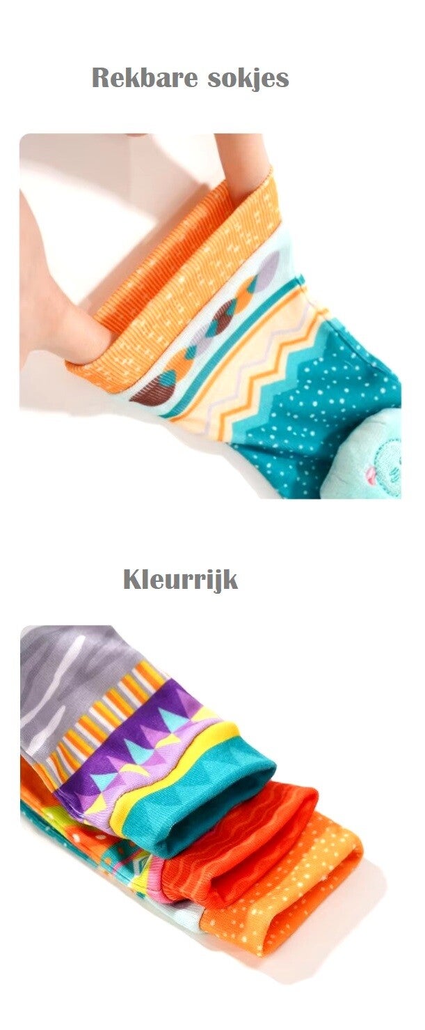 Dit setje bestaat uit 2 schattige armband rammelaars en 2 sokjes rammelaars. Wanneer jouw baby de handjes en voetjes ontdekt zal hij/zij veel plezier beleven aan deze rammelaars.