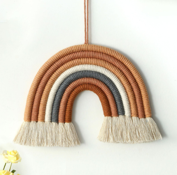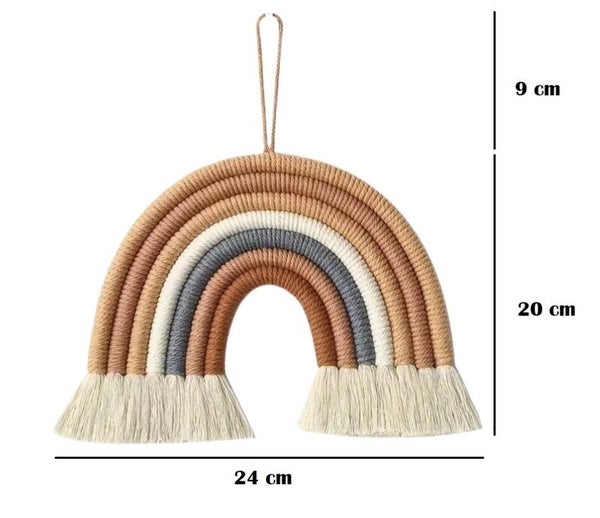 De boho stijl zorgt voor een natuurlijke en rustgevende uitstraling. Hang de regenboog eenvoudig aan de muur, deur of boven het wiegje — een echte eyecatcher voor elk interieur.