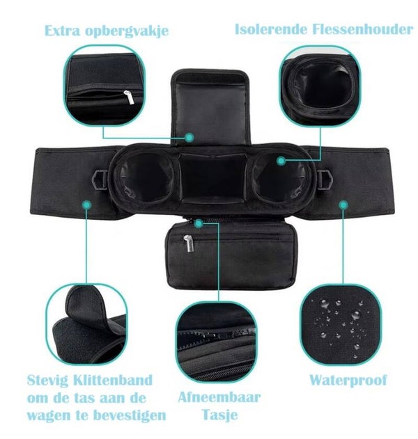Deze kinderwagen organizer is de perfecte oplossing voor ouders die hun spullen goed georganiseerd en binnen handbereik willen hebben, zowel thuis als onderweg.