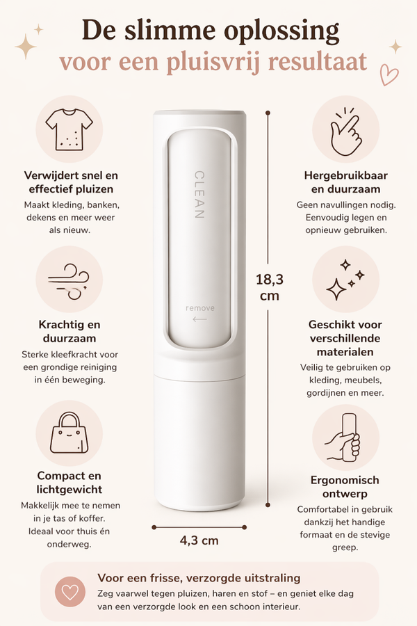 In tegenstelling tot traditionele kledingrollers met plakvellen, is deze duurzame pluizenborstel volledig herbruikbaar. Dit bespaart geld én is beter voor het milieu. Perfect voor dagelijks gebruik in huis, op werk of onderweg.