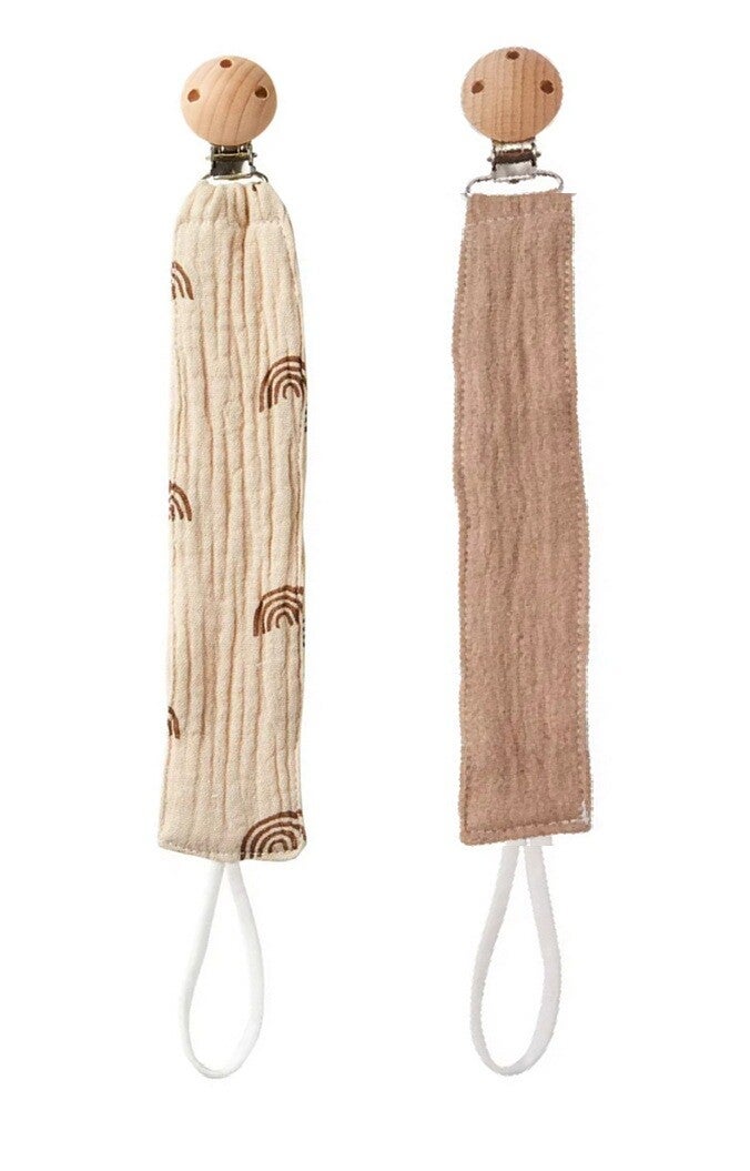 2 Stuks - Hydrofiele Speenkoord Houten Clip - Regenboog Beige