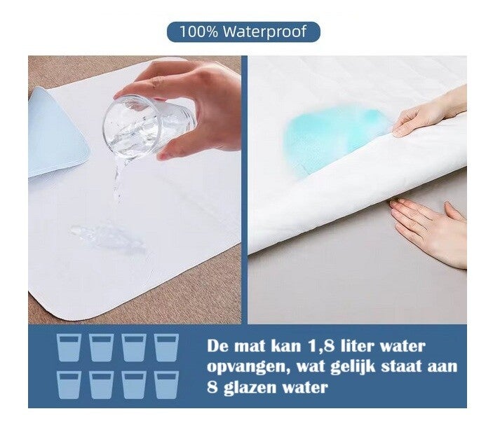 Dit is het perfecte hulpmiddel voor mensen met incontinentieproblemen of voor jonge kinderen die nog niet geheel zindelijk zijn. De mat kan tot 2 liter aan vocht absorberen en hierdoor blijft jouw matras helemaal schoon na een "plas ongelukje".