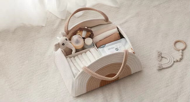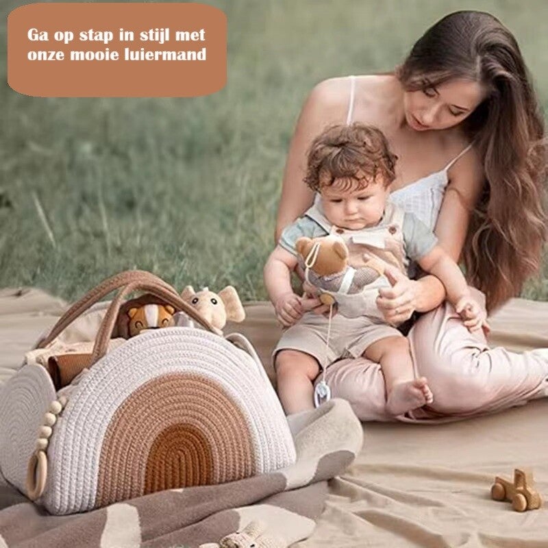 Gevlochten Luiermand - Luiertas - Baby accessoires Organizer - Rainbow Beige