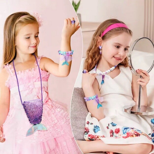 Zeemeermin Sieradenset met Schoudertasje en Strikje - Paars