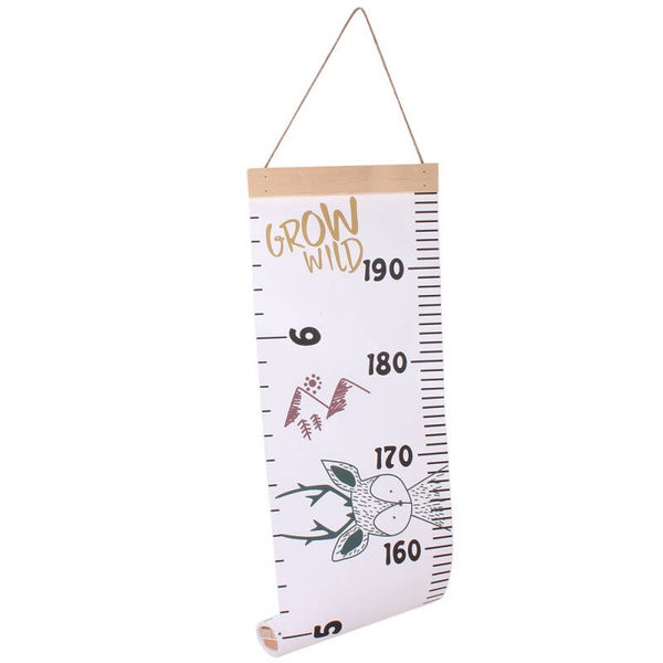 De groeimeter is gemaakt van hoogwaardig canvas en voorzien van een stevige houten ophanging, waardoor hij eenvoudig aan de muur te bevestigen is. Perfect om de groei van je kindje op een leuke en blijvende manier bij te houden.