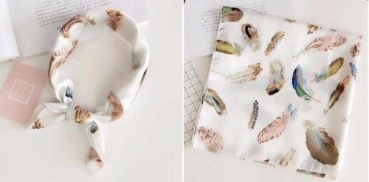 Dit elegante dames hals sjaaltje met veerprint is een stijlvolle en veelzijdige accessoire voor elke outfit. De zachte satijnen stof voelt zijdezacht aan en geeft je look een moderne en chique uitstraling.