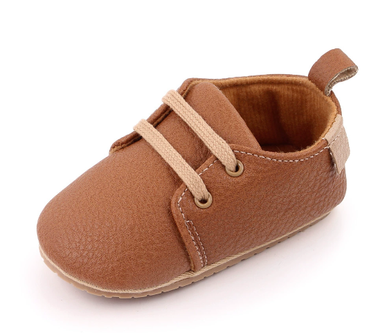 Babyschoentjes 6-12 maanden - baby schoenen maat 19/20 - Effen Bruin - Valt Klein