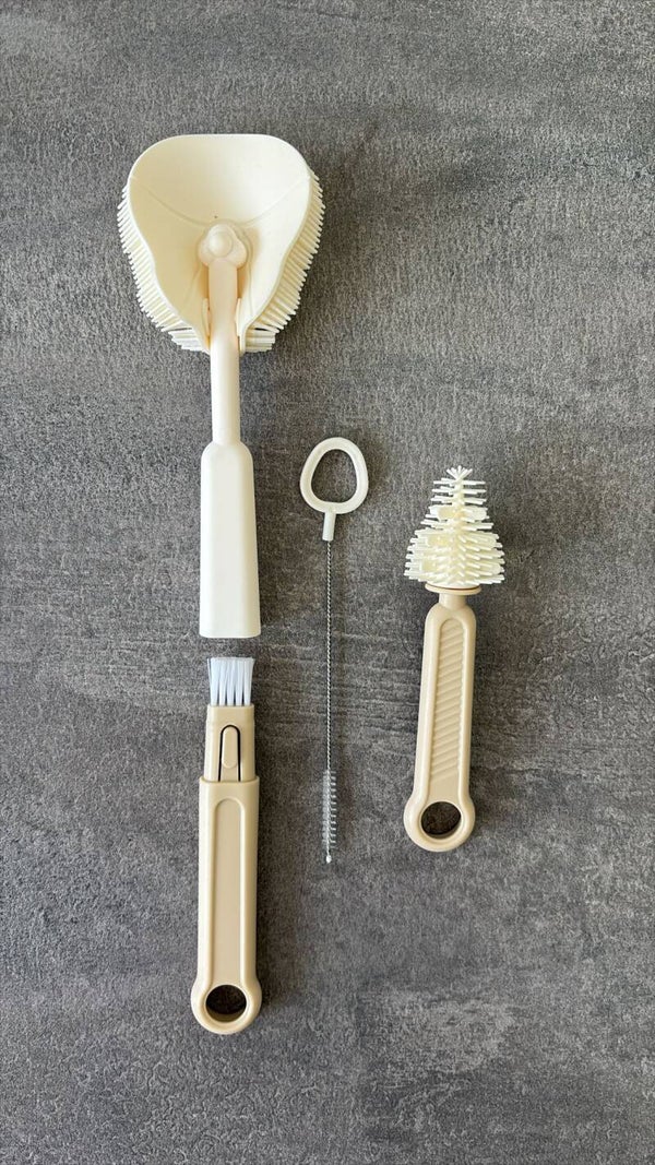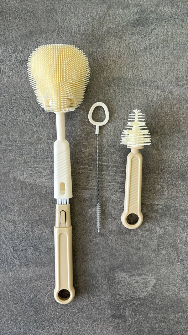 Dit setje bestaat uit 3 borstels om je babyflessen grondig mee schoon te maken. De grote flessenborstel is lang genoeg om de flessen grondig te reinigen. Met de twee kleinere borsteltjes kan je de mondstukken van de babyflessen schoonmaken.