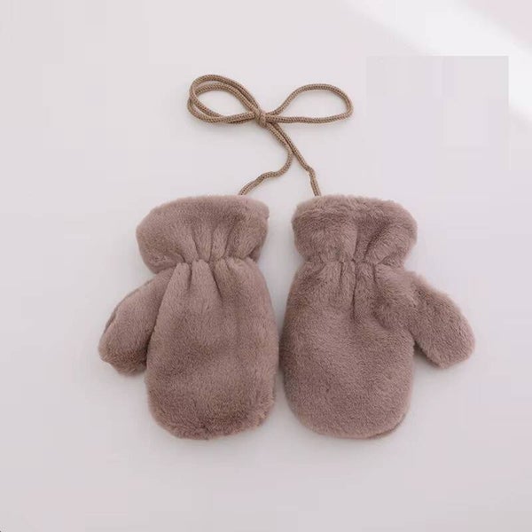 Pluchen Wanten met Teddy Voering met Koord - 3-5 jaar - Bruin