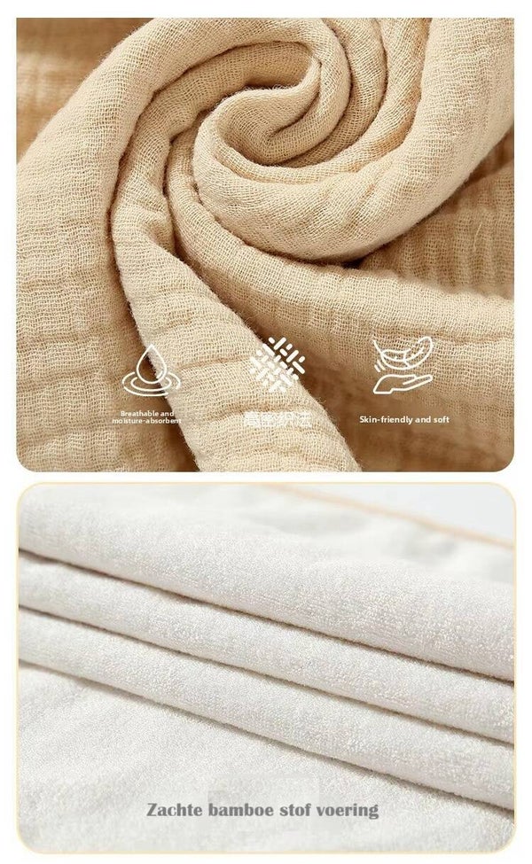 Dit zachte hydrofiele verschoonmatje met bamboe voering is een fijn en praktisch verzorgingsitem voor elke dag. De binnenkant is gemaakt van natuurlijke bamboestof, die heerlijk zacht aanvoelt en vriendelijk is voor het gevoelige babyhuidje. De waterdichte onderlaag voorkomt doorlekken, zodat je altijd met een gerust hart kunt verschonen — thuis, onderweg of op visite.