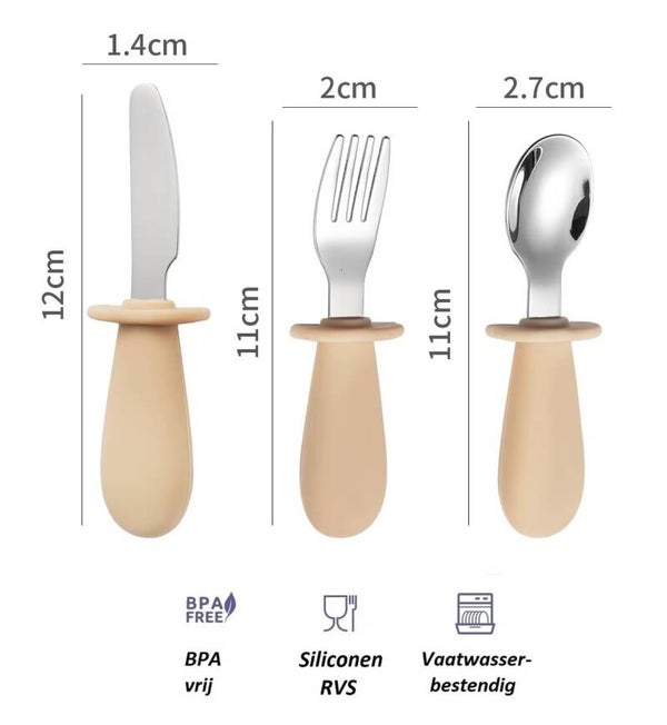 Baby Bestekset – Beige (Vork, Mes & Lepel)