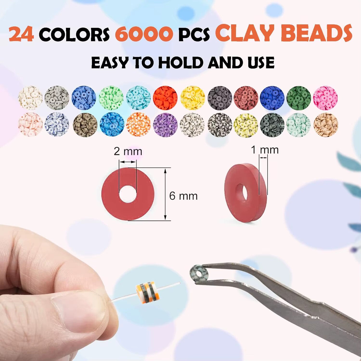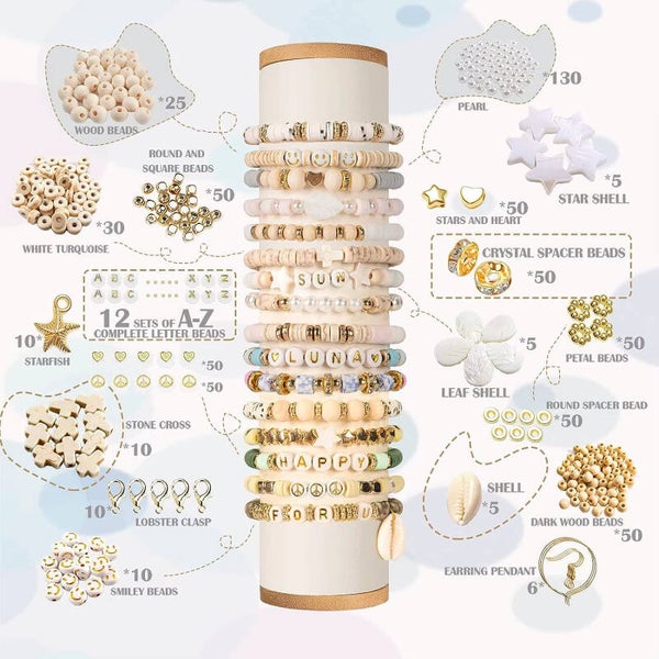 Met meer dan 8000 kralen in 24 prachtige kleuren kun je eindeloos combineren en je eigen stijl creëren. De set bevat polymeer klei kralen, parels, letterkralen, gouden bedels en schelpen, zodat je zowel elegante als speelse sieraden kunt ontwerpen.