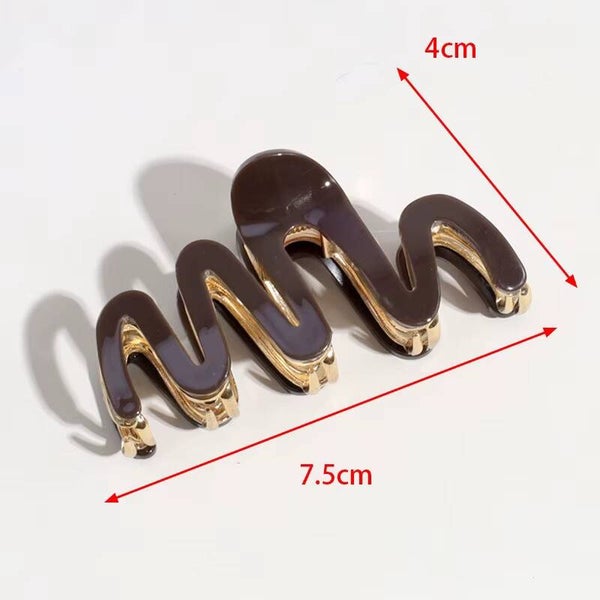 Voeg in één beweging een vleugje elegantie toe aan je kapsel met deze stijlvolle set van 3 haarklemmen. De kleuren zwart, bruin en roze zijn perfect op elkaar afgestemd en passen bij elke look – van casual tot chique. Dankzij de goudkleurige binnenkant stralen de klemmen pure luxe uit.