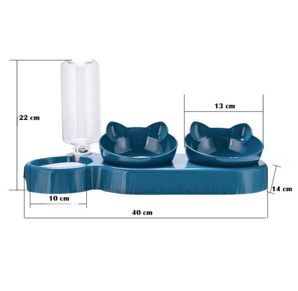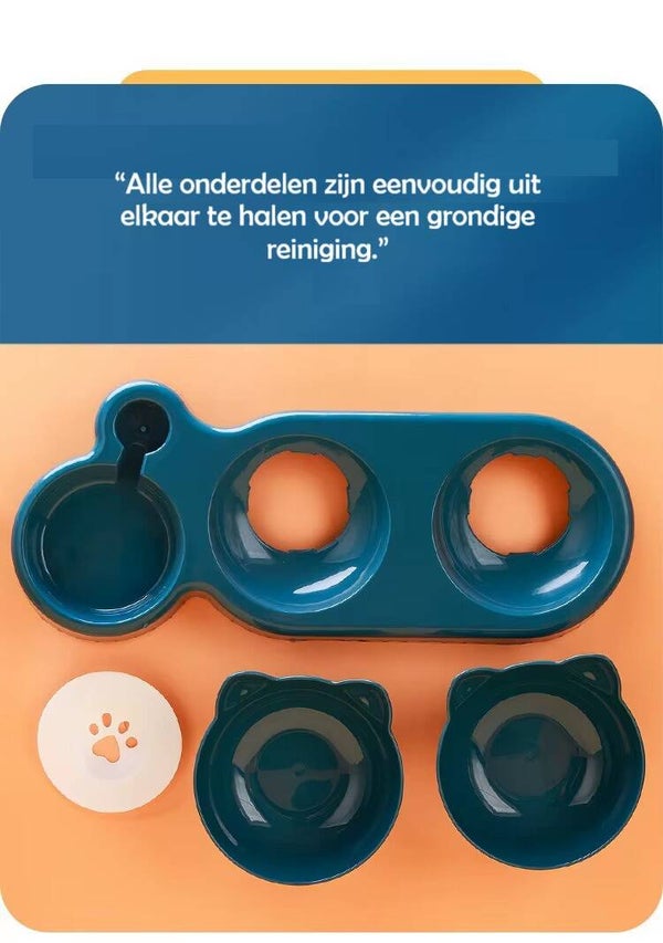 3-in-1 Huisdier Voeder- & Watersysteem – Dubbele Voerbak + Automatische Waterdispenser
