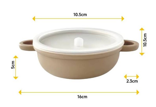 Deze stijlvolle en praktische babykom is ideaal voor het serveren van warme of koude maaltijden. De buitenkant is gemaakt van food-grade siliconen, terwijl de binnenkant bestaat uit 304 roestvrij staal, wat zorgt voor duurzaamheid en eenvoudige reiniging.