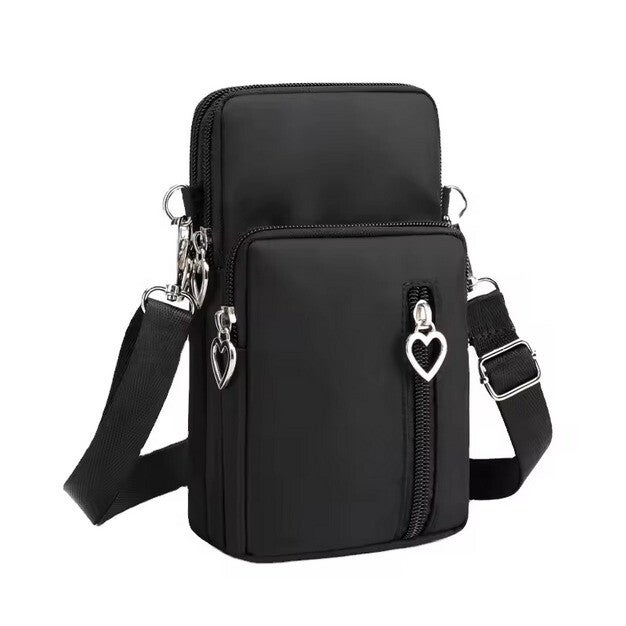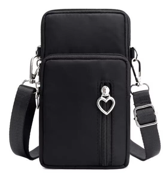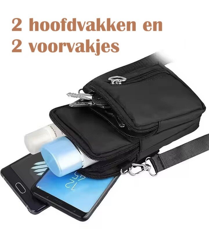 Zwarte Mini Nylon Crossbody Tas – Telefoontasje 4-Vaks - Waterproof – 20x10x5 cm