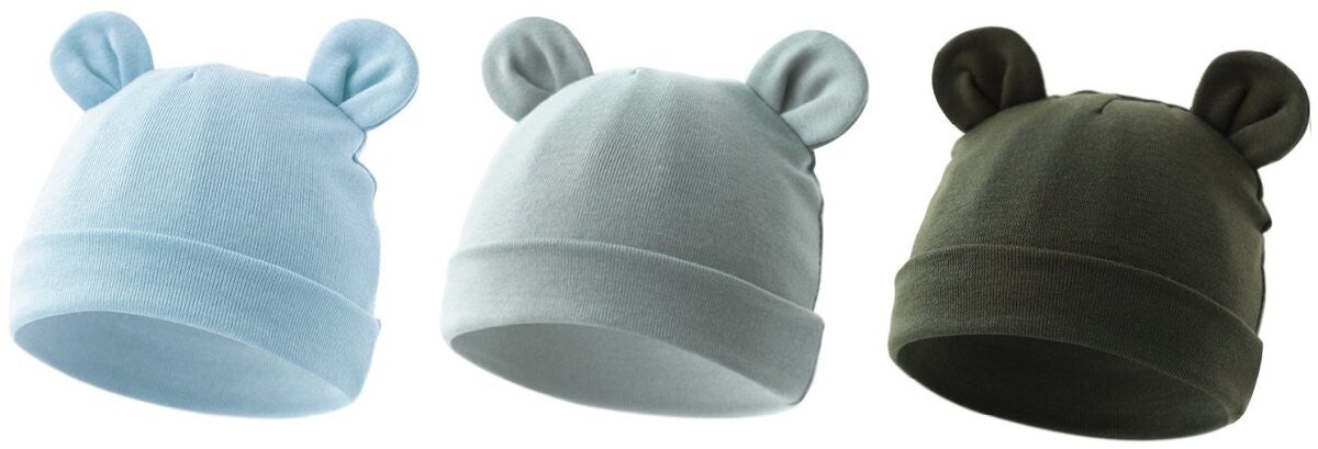 3-Pack Babymutsjes Newborn – Beervorm – Effen Groen & Blauw