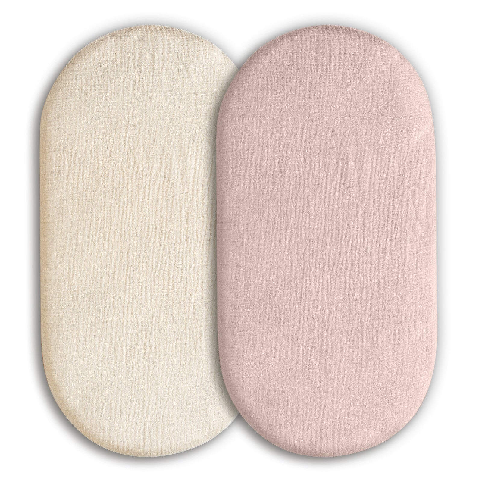 2 Stuks - Hydrofiele Baby Hoeslaken Wieg - Kinderwagen matras - Effen Roze & Crème/ Lichtgeel - 80x40 cm
