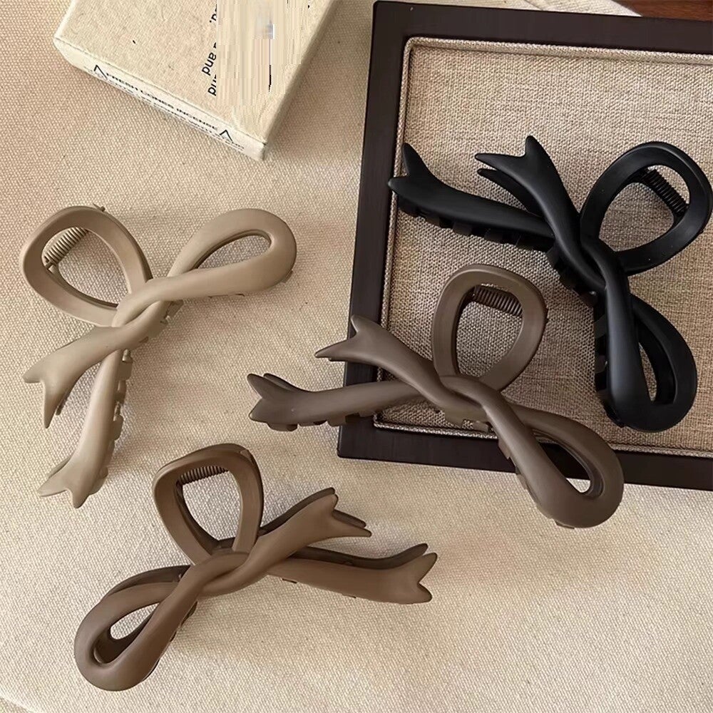 4 Stuks Dames Strikvormige Haarklemmen Extra Groot - 12 cm - Beige, Lichtbruin, Bruin & Zwart