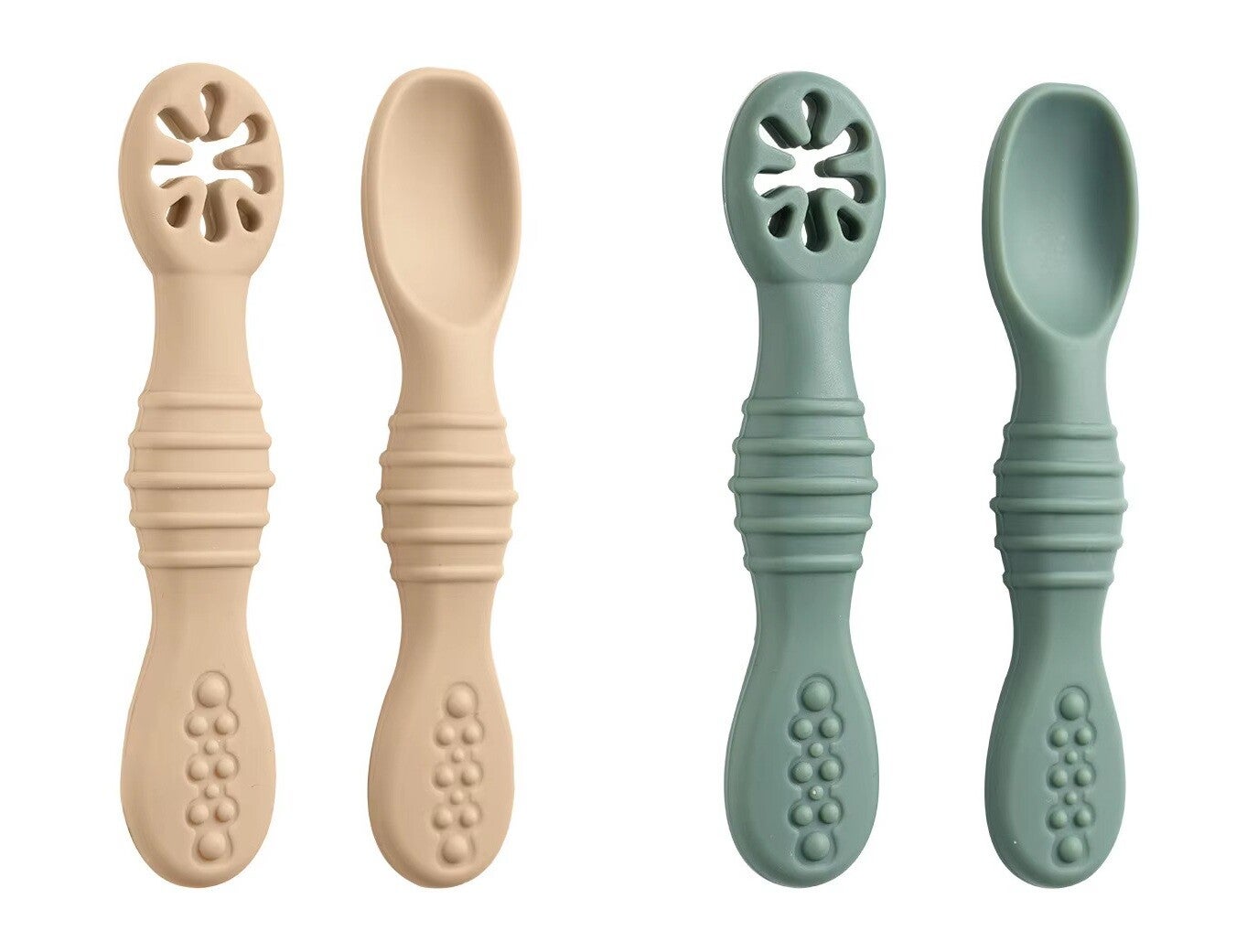 2-Delig - Siliconen Baby Lepelset – Groen & Beige - Zachte Eerste Lepels - BPA-Vrij