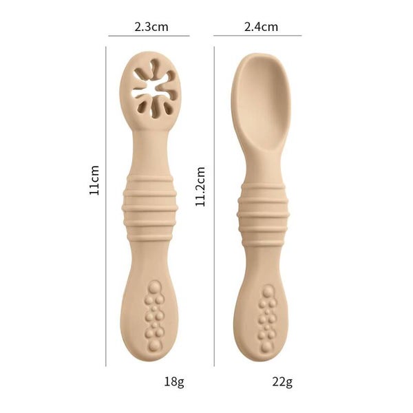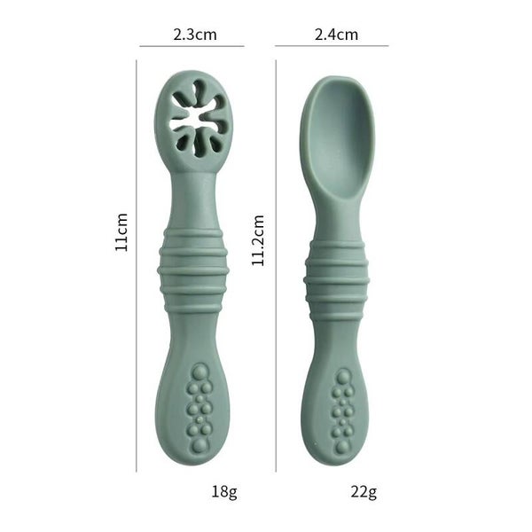 De Siliconen Baby Lepelset (Groen & Beige) combineert veiligheid, comfort én stijl tijdens de eerste eetmomenten van jouw kleintje. De zachte, rustige kleuren passen perfect bij elke baby-uitzet en creëren een kalm en vertrouwd gevoel aan tafel — ideaal wanneer je baby nieuwe smaken en structuren ontdekt.