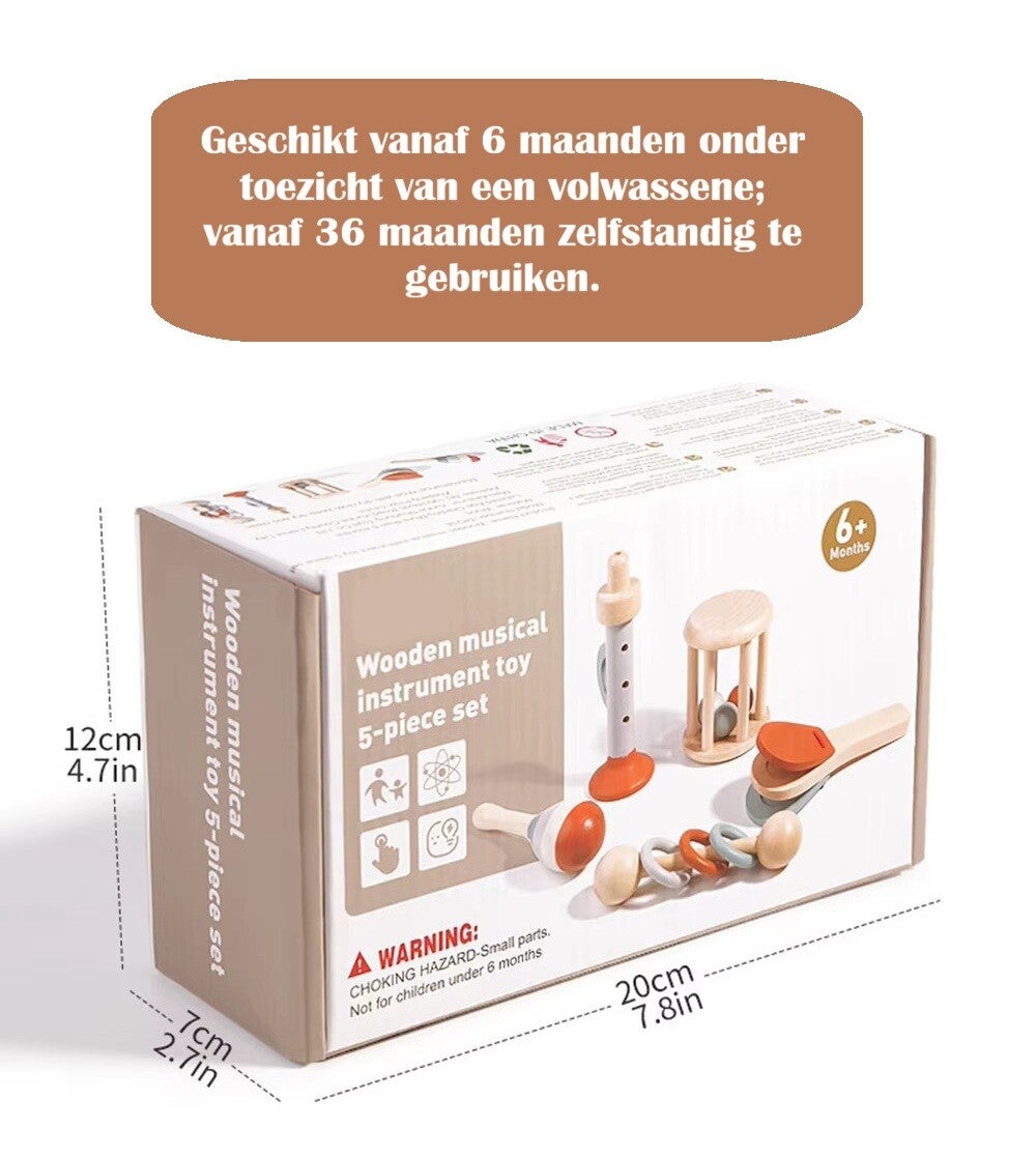 5-delige Houten Muziekinstrumenten Set voor Kinderen – Educatief Speelgoed - Vanaf 6 maanden