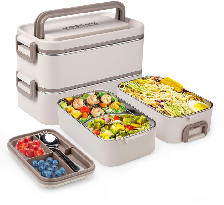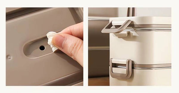 Dankzij de RVS binnenbak is deze lunchbox geschikt voor zowel warm als koud voedsel, terwijl de lekvrije sluiting ervoor zorgt dat je maaltijden veilig in je tas blijven. De meerlaagse indeling houdt gerechten netjes gescheiden, en het onderste vak bevat een handige lekvrije kom, ideaal voor soep, saus of fruit.