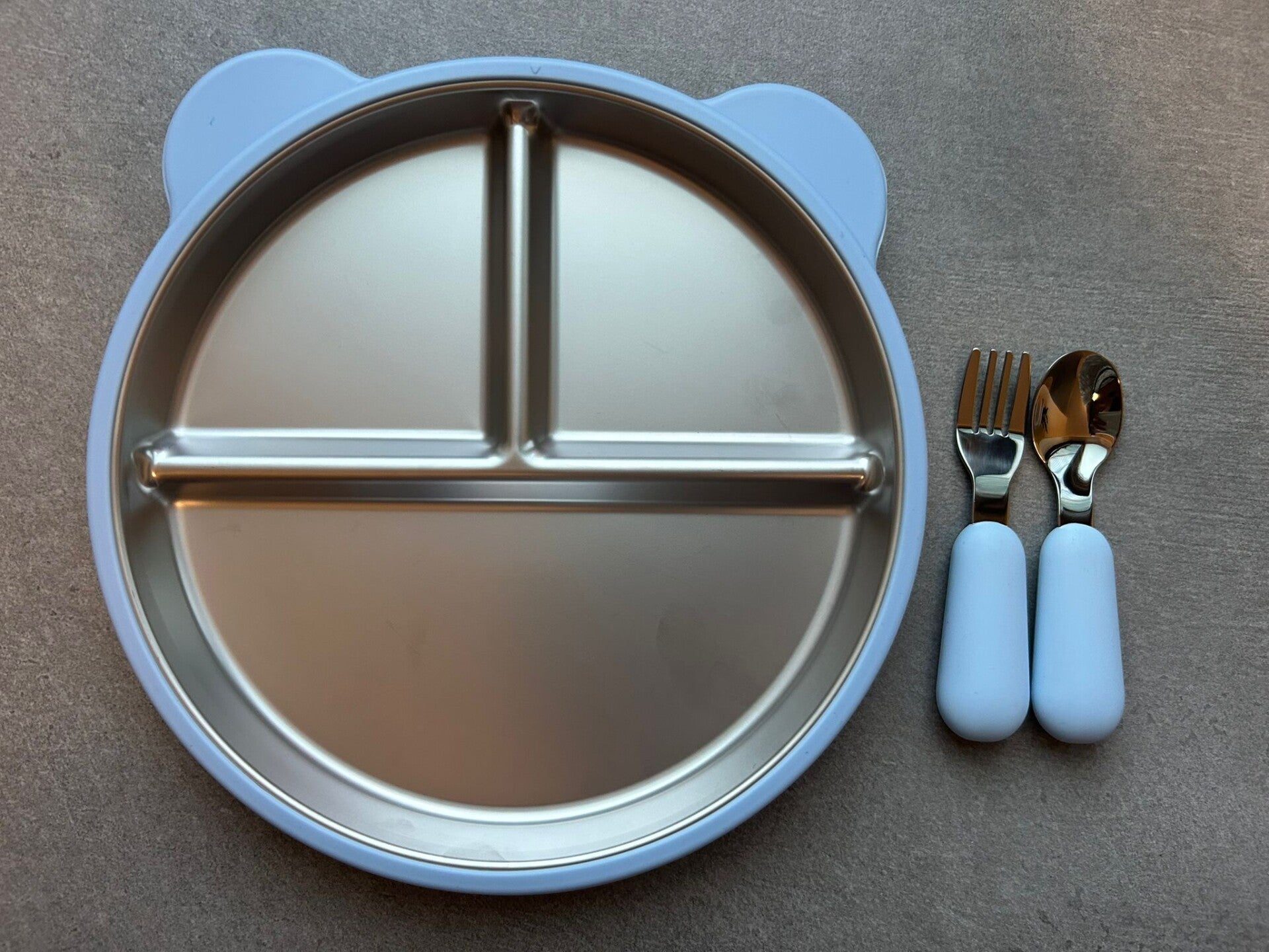 RVS Kinderbord met Bestek met Zuignappen - Blauw – Met Vakken – Inclusief Lepel en Vork