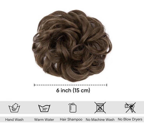 De scrunchie is gemaakt van hoogwaardig synthetisch haar en heeft een bruin effen kleur. Dankzij deze egale, natuurlijke bruintint blendt de scrunchie moeiteloos met bruin haar en zorgt het voor een rustige en verzorgde look, zonder kleurverschillen of highlights.