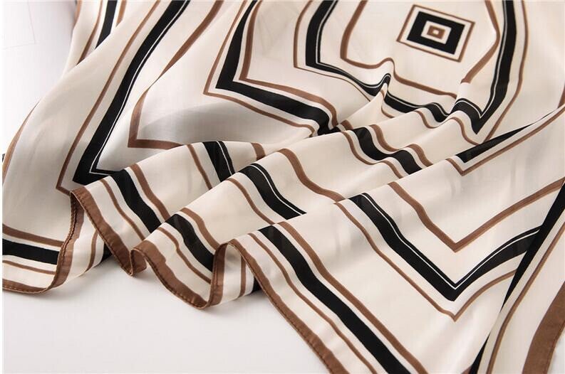 Elegant Stijlvol Dames Haar- en Hals Sjaaltje – Beige Gestreept 70x70 cm Neksjaaltje