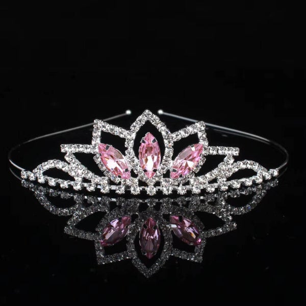 Prinsessen Tiara Zilver met Roze Marquise Kristalstenen – Elegant Bladvorm Design