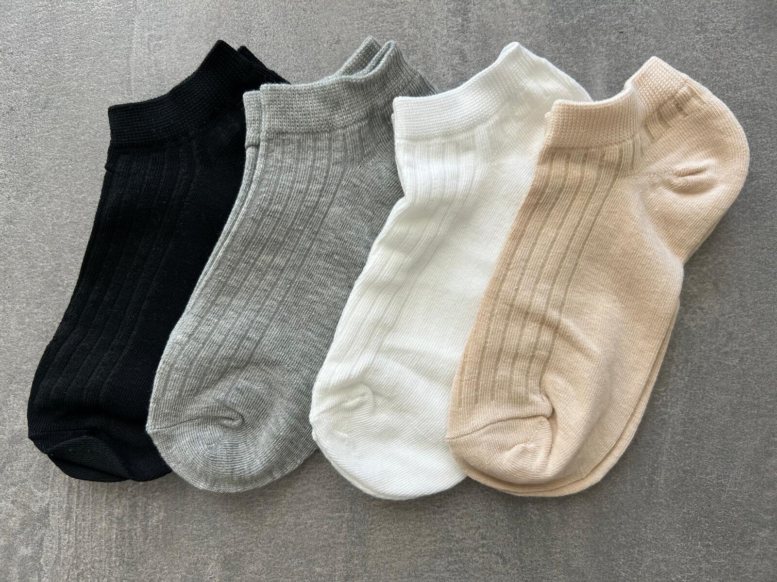 Ervaar dagelijks comfort met deze 4-delige set sneaker sokken in maat 35-38. De set bevat stijlvolle basiskleuren: zwart, grijs, wit en een warm beige tint – perfect voor elke outfit.