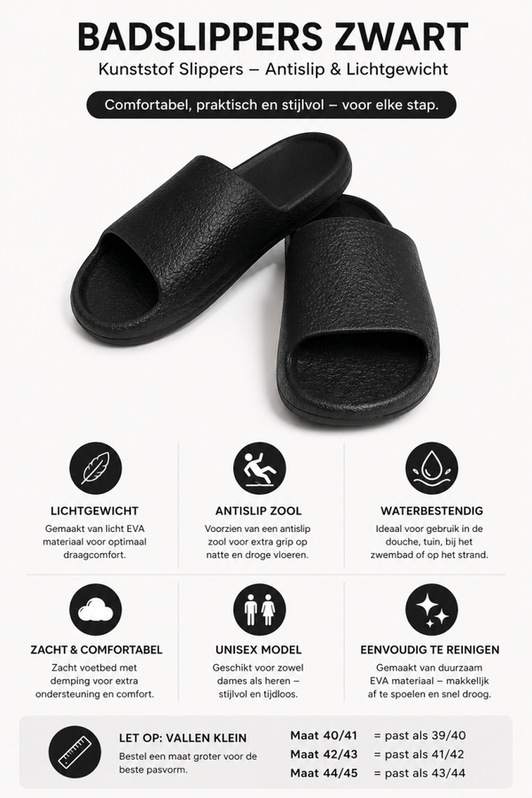 Badslippers Zwart– Kunststof Slippers – Antislip & Lichtgewicht