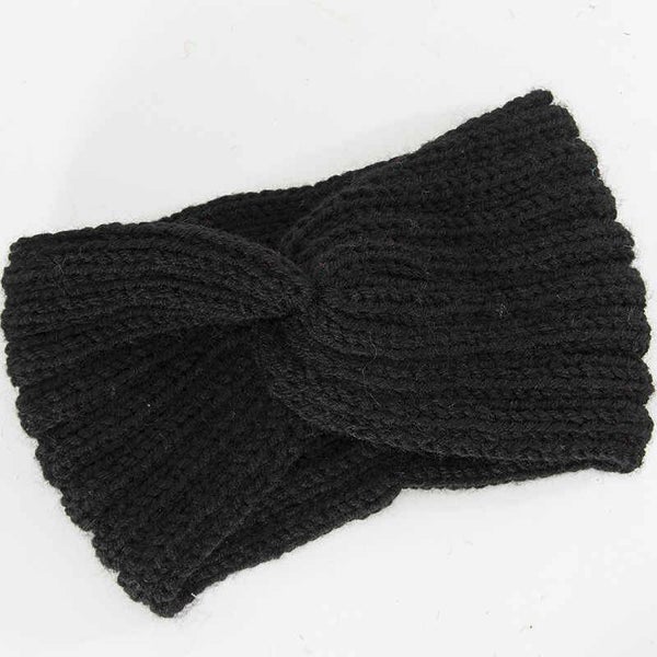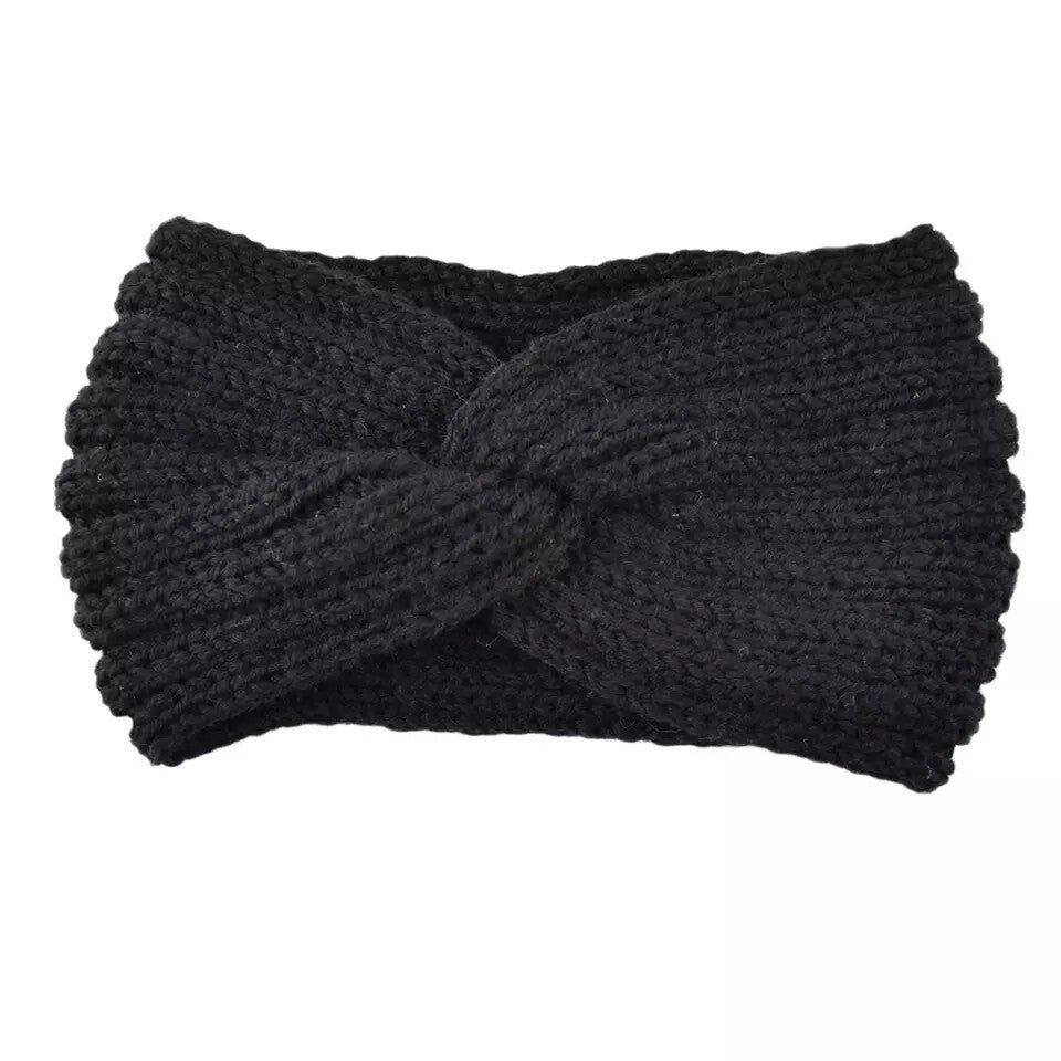 Gebreide Dames winter haarband - oorwarmers - hoofdband zwart - met knoop