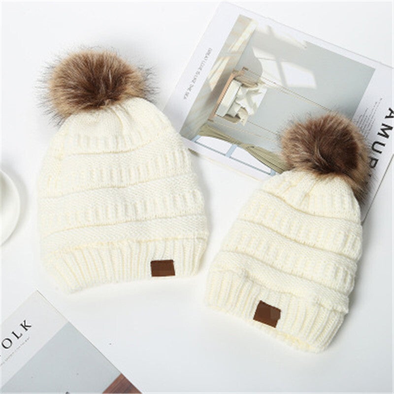 - Stijl: warme gebreide muts met pompom, voor ouder & kind