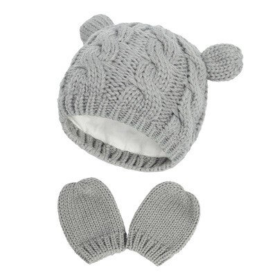 Baby Muts en Wanten Set – Grijs – Beertje – Katoenen Voering
