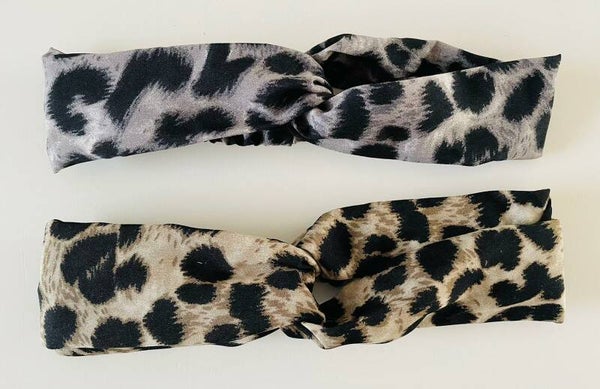 - Set van 2 haarbanden: grijs en beige met luipaardprint